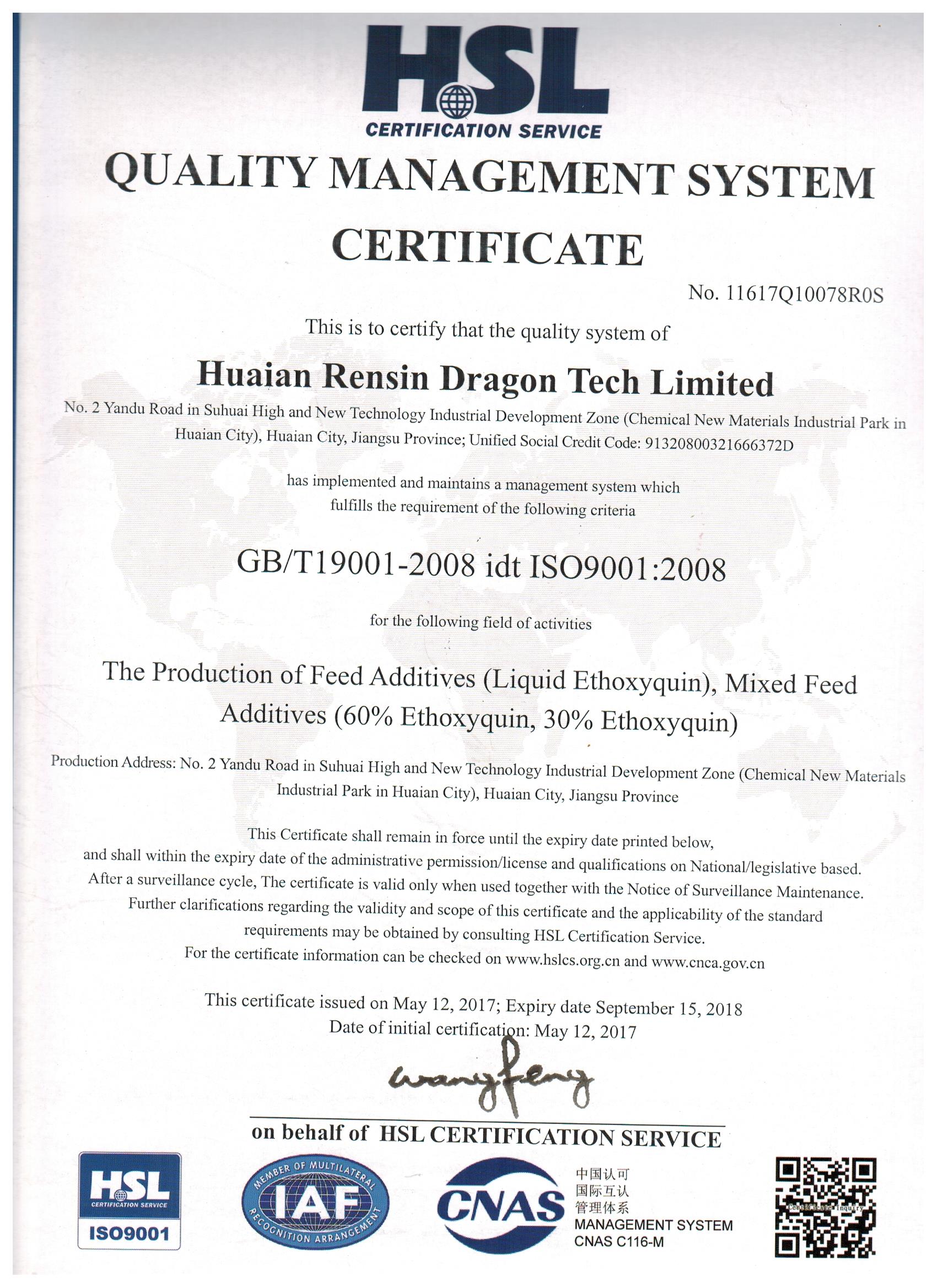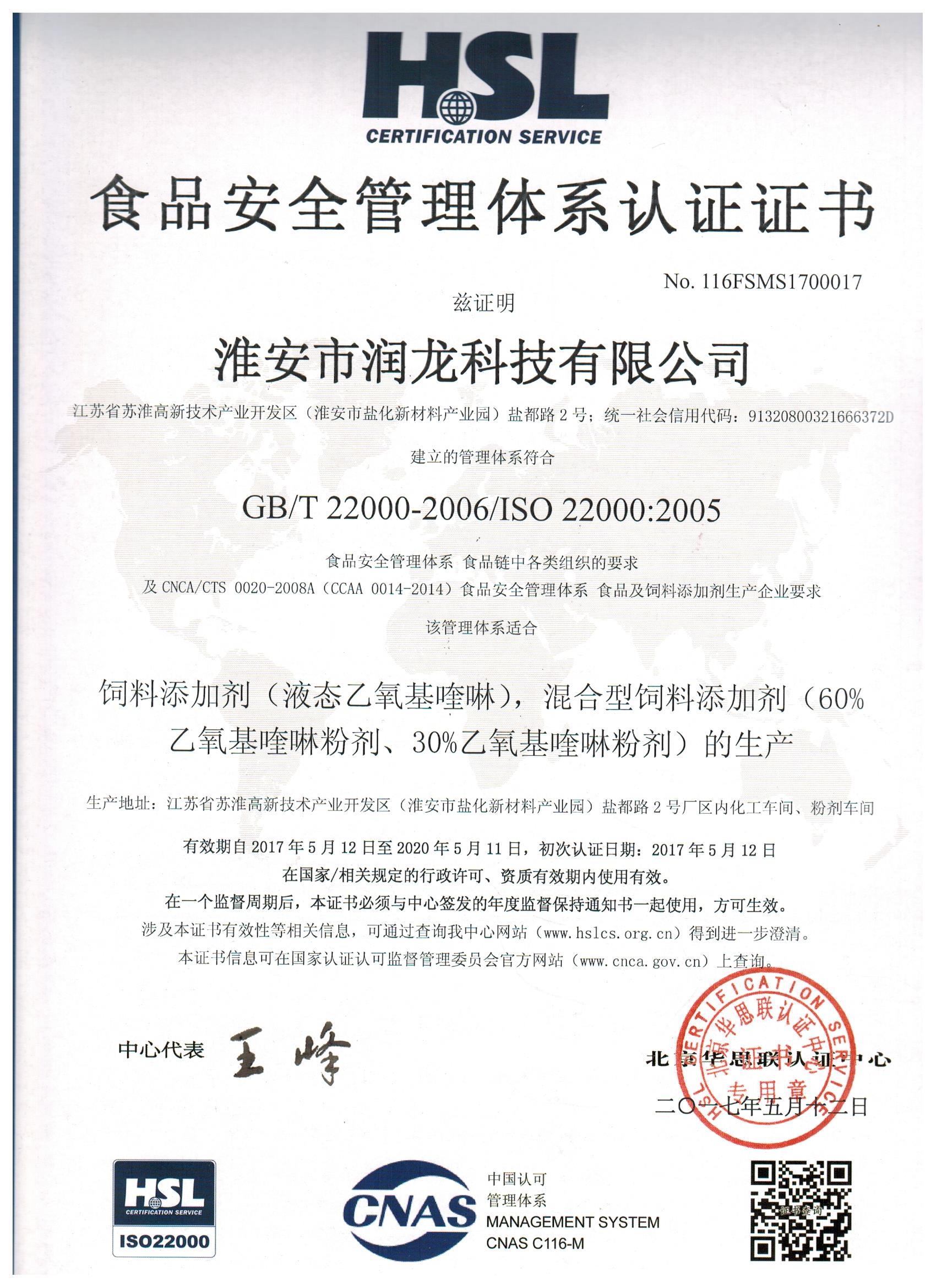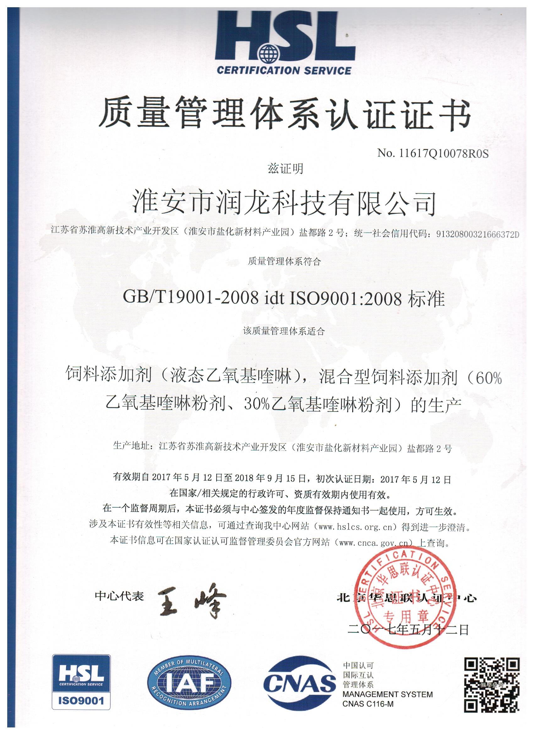潤龍科技乙氧基喹啉自投產(chǎn)以來,生產(chǎn)穩(wěn)妥、安全、質(zhì)量可靠,生產(chǎn)理念堅(jiān)持走全球一體化道路,所投產(chǎn)的產(chǎn)品全部基于國際質(zhì)量水平的技術(shù)基礎(chǔ)之上實(shí)施,主營產(chǎn)品“乙氧基喹啉”已家喻戶曉,暢銷亞洲、歐洲、南美洲、北美洲、大洋洲等30多個國家和地區(qū),年出口占比高達(dá)80%以上。同時,與國內(nèi)多家百強(qiáng)企業(yè)形成強(qiáng)力的合作關(guān)系。